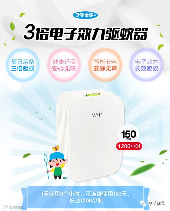 日本本土版VAPE电子驱蚊器未来150日,无毒 无味 静音,宝宝婴儿孕妇都可以使用,最贴心的驱蚊器,无需插电,便携式,夏天那是到了,不管是外出还是在家都是必备品。一次工作8小时,可用150天,这个夏天有它就够了!最放心最贴心的驱蚊器,明星同款!不用拖着长长的电线 (芯电池是一体的 )每天睡觉之前打开早上起来关掉就好,轻轻松松,过一个默默无蚊的夏天~