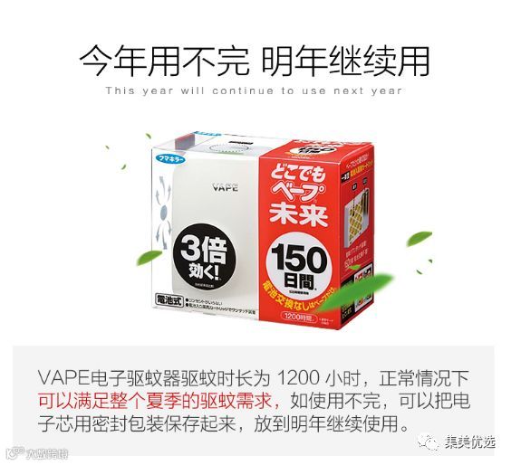 日本进口VAPE未来电池驱蚊器150日本体 室内电子驱蚊器