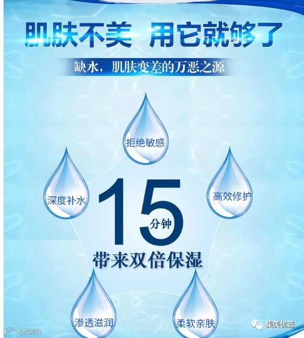 这款一听名字就能感觉到,水库补水面膜,就是补水补水补水。一盒10贴,便宜好用面膜✨丽得姿 💙主打深层保湿补水、淡化细纹功效。👉适合肤质:所有肤质;皮肤紧绷、干燥粗糙、角质和细纹较多首选。满满的精华,气味清香,面膜纸服帖 💙 深层补水⭐效果x2采用纯净 💙 的阿尔卑斯 💙 冰河水☁锁水保湿💦效果x2一贴补水 💙 2x6小时+全面应对平日干燥。提亮肤色💦2倍的 💙 矿物质💦赶走肌肤疲惫🌙重新赋予健康光泽!