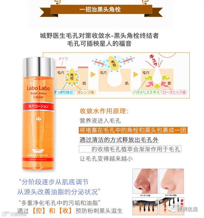 如果脸上有很多烦人的闭口粉刺,这款水也是很不错的选择。坚持使用,可以有效抑制皮脂过剩,软化角质、疏通毛孔,并且防止毛孔的扩大。