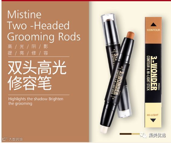 特点:白色一头为高光提亮,带细微珠光,深色一头为打阴影修容。