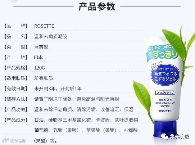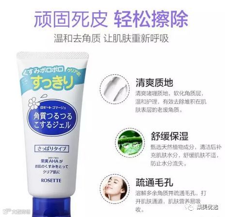 这款Rosette去角质凝胶就是专门来解救薄皮哒。原料取自天然的果实AHA、BHA配合制作,AHA果酸分子可渗入真皮层,使胶原蛋白增生,去除皮肤外层老化结构的同时帮助疏通毛孔。BHA能软化老废角质,减少老化细胞在皮肤上的堆积,另外还添加了乳酸及苹果酸等美白、抗氧化成分。