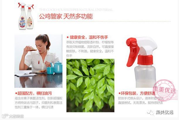 意大利大公鸡头万能清洁剂,采用独特配方,是清除重油污的利器,厨房卫生间必备!能够轻松清洁厨房灶台,轻轻一喷,等待几秒钟,用布一擦就焕然一新;抽油烟机的厚重油污,可将过滤器放入10%清洁液的溶液中浸泡,然后冲水即可;更可用来清洁衣物上的顽固污渍,比如领口、袖口,轻轻一碰,等待几秒钟再清洗,污渍全无;墙壁地板,卫生间,家具,汽车,以及常用的桌布抹布,都可以用它清洁!