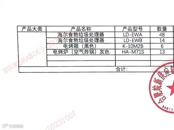 标的规格:海尔垃圾处理器LD-EWA-48台,垃圾处理器LD-EWB-14台,电烤箱K-10M2B- 6台,电烤炉HA-M71S-13台