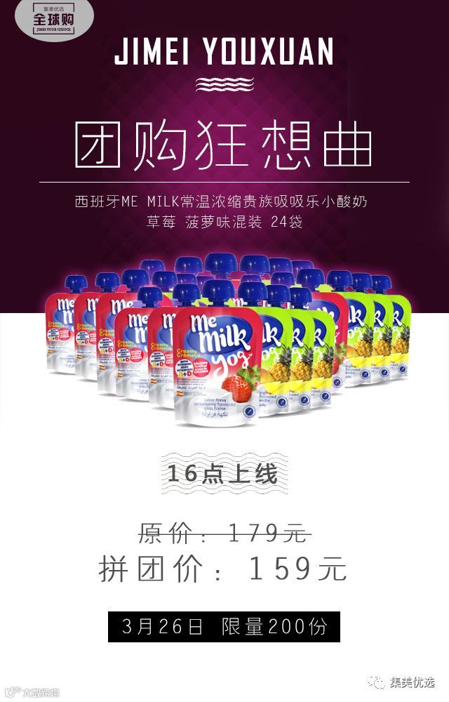 3月26日,16:00准时上线,原价179元,集美会员团购价159元,立省20元,限量200份。