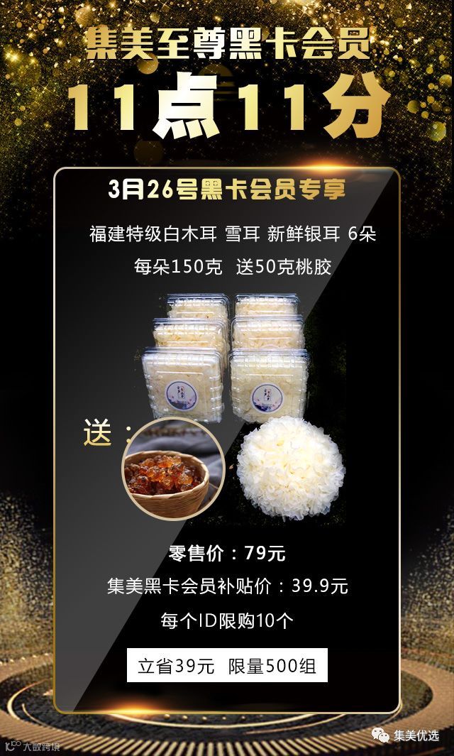3月25日,11:11,在集美会员专享,只需要39.9元就可以品尝到福建古田鲜活银耳 特级白木耳 雪耳 新鲜银耳 6朵 150克/朵 产地直发【买就送】桃胶50克立省39元,限量500组,手慢无!!!