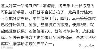 天气这么冷,走在路上都是缩手缩脚的,小时候冻疮又疼又痒,特别难忍,今天给大家推荐意大利进口的冻疮膏,主要治疗天气寒冷造成手部、耳部、 脸部等器官跟皮肤瘙痒,功能强大,连续使用七天就能消除肿痛跟皮肤瘙痒。另外主要在护肤方面做到全面的保证,也是意大利家庭医生主推冻疮的产品之一。