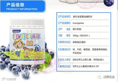 蓝莓被誉为“水果皇后”,“美瞳之果”。蓝莓中含有的多种维生素、钙、锌、铁、氨基酸铜都是非常丰富的,这些物质也都是人体所必须的营养物质。Maxigenes蓝莓味咀嚼奶片众多妈妈的选择,不但畅销欧美,并且特别适合亚洲儿童体质,补充膳食营养,味道也是棒棒哒,入口之后香味扩散充溢两颊,你能体会到由口至腹的香醇和享受,不厌不腻,让你精神焕发、活力四射。有效帮助维护眼睛健康、预防视力受损,补充身体成长所需要钙质等营养,为孩子、孕妇及成人专门制定一种每一天可以食用理想的健康食品,让您沉浸在Maxigenes提供的香浓奶香和蓝莓果香中。