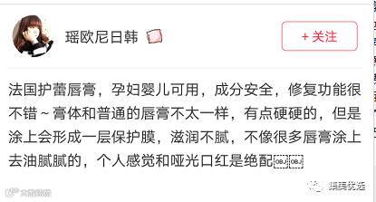 秋冬季节天气干燥,嘴唇特容易起皮、干裂,可难受了,唇膏得收上一支,这款唇膏成分很温和,安全到3岁以上的孩子、孕妇都能用,富含乳木果油、维生素AEG、甘油等等,滋润效果很不错,涂抹在嘴唇上不会有油腻感,高度保湿,涂口红时用来打底也不错,这款唇膏在法国的销量和口碑一直都很好,价格也很亲民。