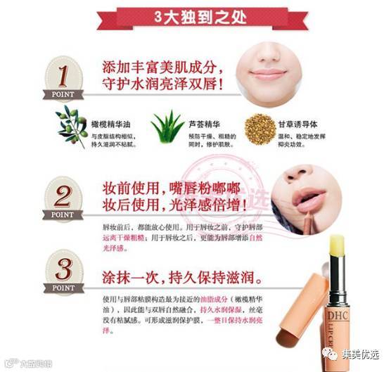 1.唇部清洁更彻底 妆前必须要用DHC橄榄卸妆油彻底卸除,唇部角质可以用热毛巾轻敷1分钟,建议一周一次哦