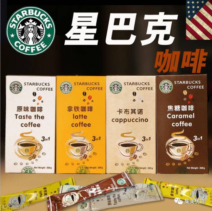 美国进口 星巴克咖啡批发休闲饮品可冲泡咖啡粉 三合一 300g 一盒10条
