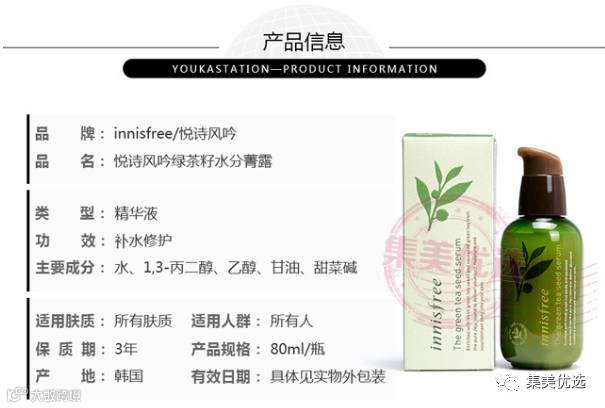 韩国 Innisfree 悦诗风吟绿茶精粹补水保湿精华液 80ml 小绿瓶
