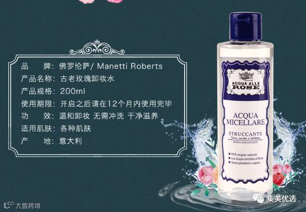 意大利进口ACQUA ALLE ROSE古老玫瑰卸妆水200ml