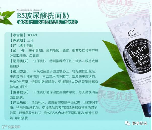 韩国AHC B5玻尿酸水合舒缓洗面奶 180ml 深层清洁保湿泡沫丰富