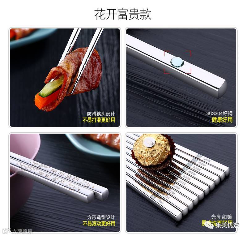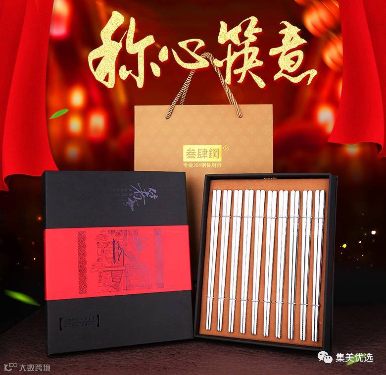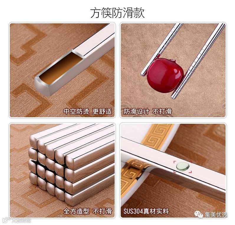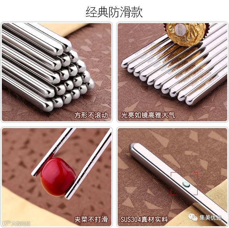 不锈钢筷子全方礼品餐具套装10双礼盒(花开富贵款/经典防滑款/方款防滑款)