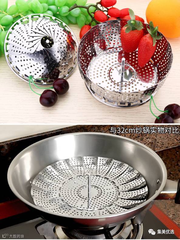 厨房无磁不锈钢蒸笼盘折叠高脚包子馒头垫蒸格屉架可伸缩水果篮