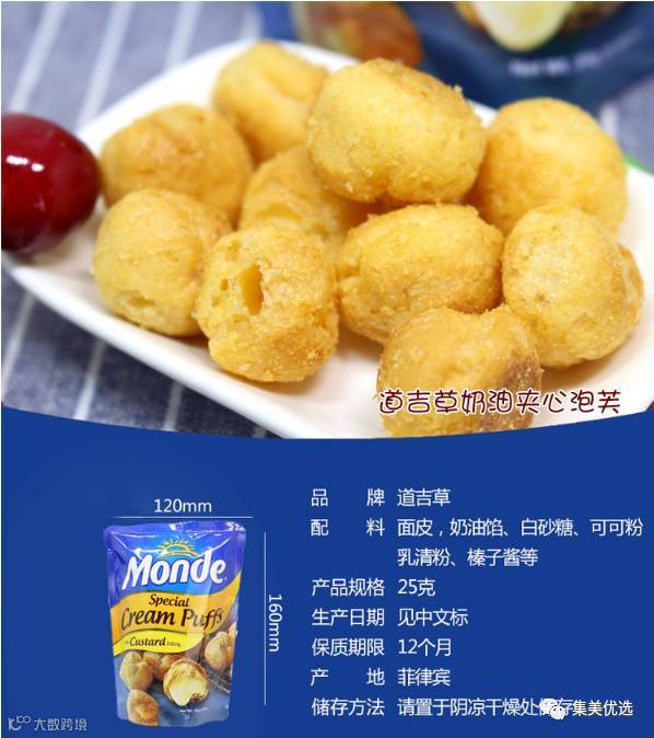 菲律宾进口monde道吉草奶油夹心泡芙25g休闲甜食糕点网红零食品*2