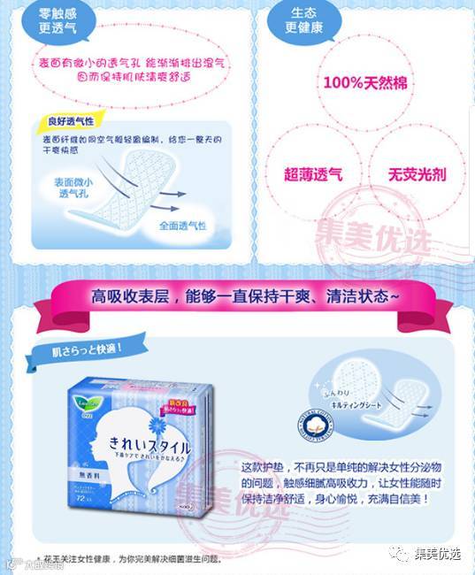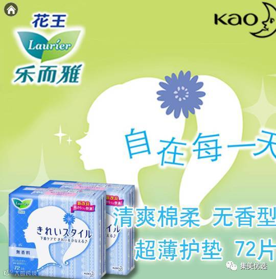 日本KAO花王LAURIER乐而雅 清爽棉柔无香型超薄护垫14cm72枚*2包