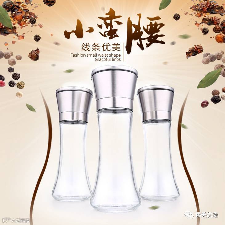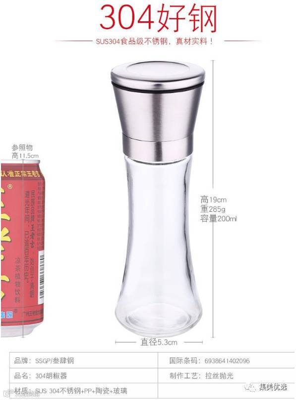 304不锈钢胡椒研磨器玻璃胡椒粉花椒咖啡研磨器手动椒磨研磨瓶 18cm/20cm/22cm/24cm/26cm/28cm/30cm