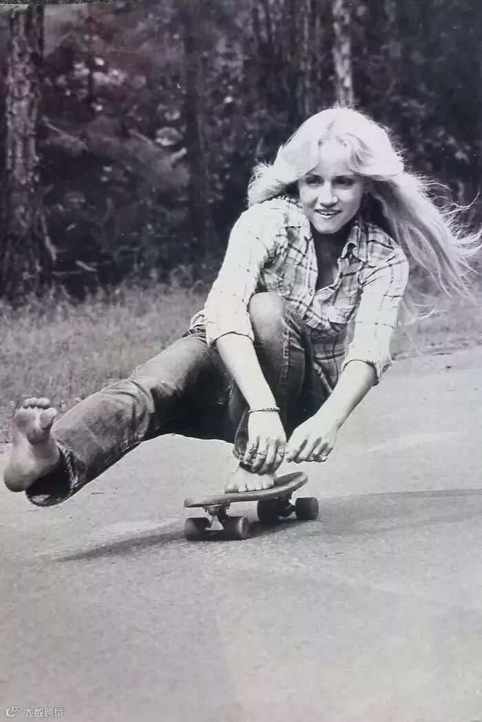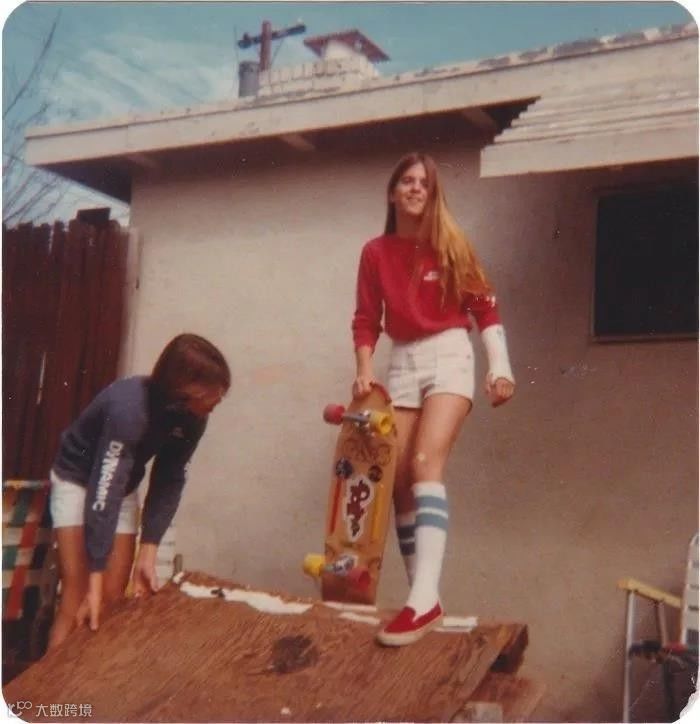跟现在玩滑板的小姑娘,