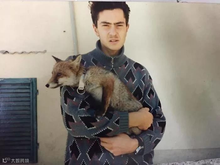 抱着他的宠物狐狸。