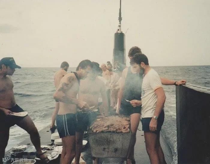 我发现一张我爸在移动的潜艇上烤肉的照片。