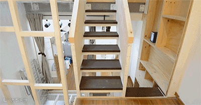 她把楼梯空隙全都利用起来,