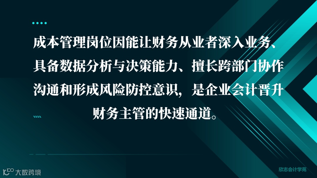 总之,成本管理岗位因其对企业经营的全面接触、强大的数据分析与决策支持能力、出色的跨部门协作沟通能力和敏锐的风险控制意识,成为企业会计晋升财务主管的快速通道。