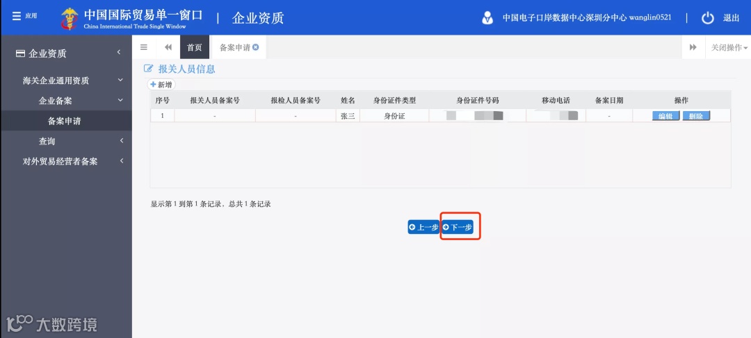 如需申请报关人员备案,则填写此界面信息;如无需申请,则直接点击“下一步”。