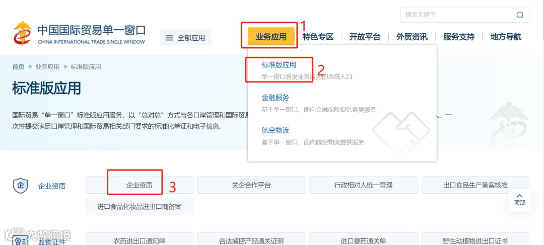 打开“中国国际贸易单一窗口”(复制并通过浏览器打开网址:https://www.singlewindow.cn/#/standardEdition),点击“业务应用”→“标准版应用”,进入账号登录界面。