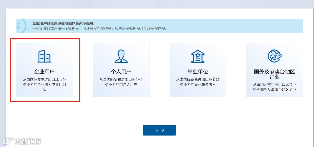 选择“企业用户注册”。