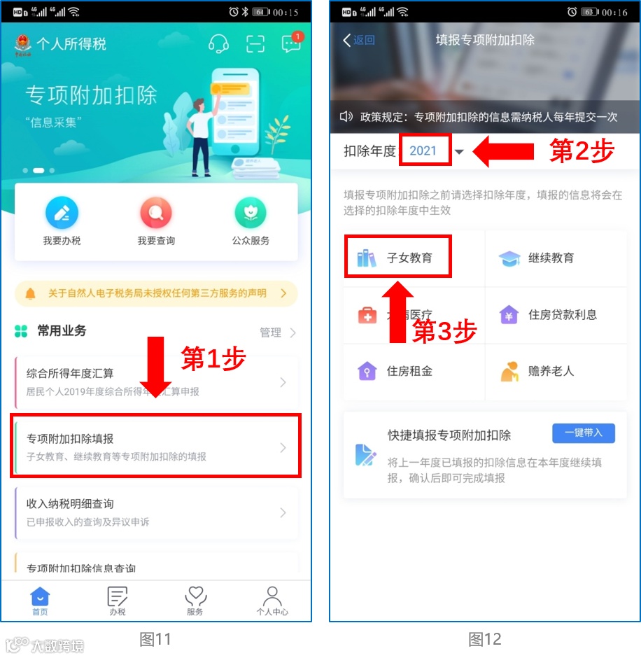 直接选择首页的“专项附加扣除填报”。如上图11、图12。