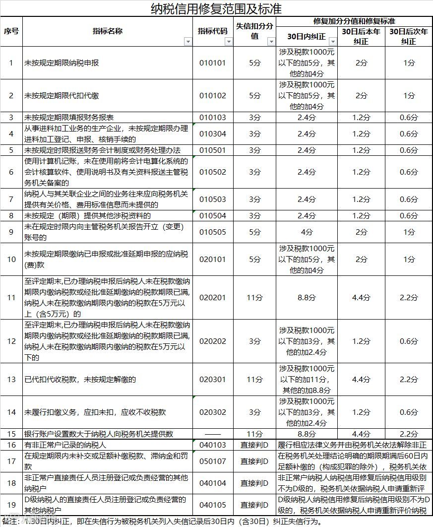 税总最新出台了纳税信用评分可以修复的机制,从2020年1月1日起,开始执行。