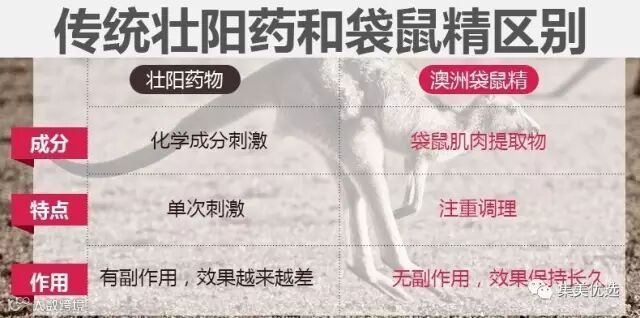 成分:每个胶囊包含57%的袋鼠精,相当于50000毫克的袋鼠肉