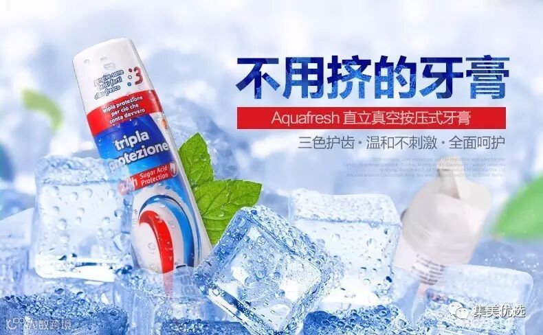 Aquafresh是制药业巨头葛兰素史克公司旗下的专业口腔护理品牌,产品包括牙膏、漱口水、洁齿灵、牙刷等等。据IRI统计,Aquafresh是美国排行前三位的牙膏品牌。截止到2005年底,它的销售额为一亿五千万美金。其产品常常把膏体设计为三色,具有微激活泡沫,能杀灭导致口气的99.9%细菌。其主要目标消费者是年轻、充满活力的人群。