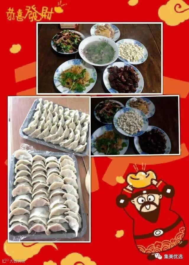 年夜饭的冷菜海鲜羹已上桌!饺子已包好,团圆的饺子似元宝。恭祝大家鸡年大吉!恭喜发财!身体健康!