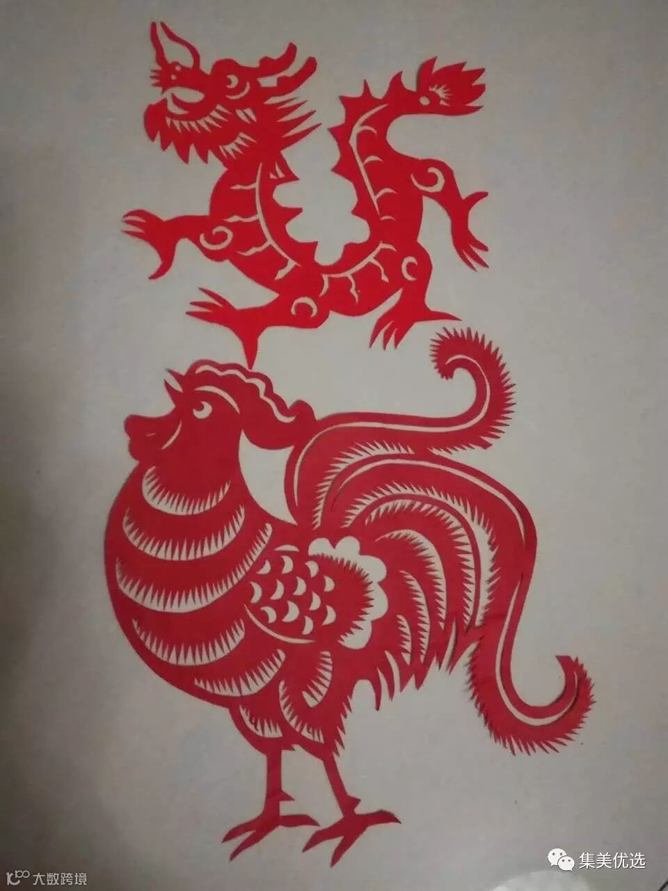 这是小孩去大伯家,伯母送给小孩的手工作品,是家人亲手剪的,代表吉祥如意,鸡年大吉!很有中国传统气氛的作品。