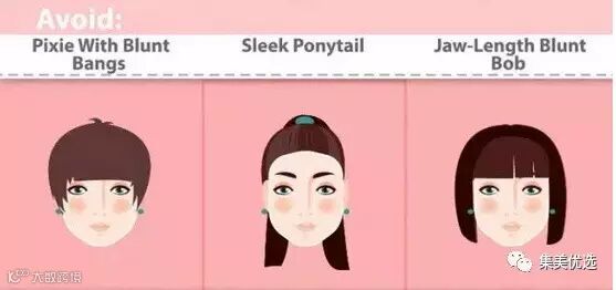 圆脸容易显得脸胖,不适合中分紧贴头皮的发型,选择斜刘海可以有效的拉长脸型,减弱肥胖感。