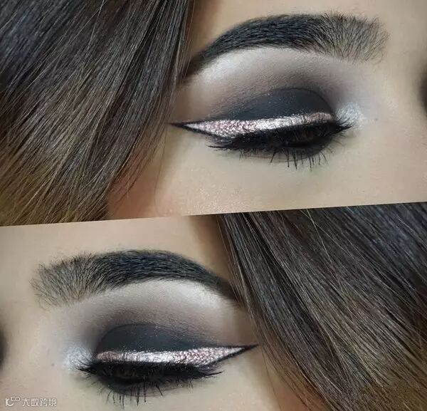 连贴假睫毛、画细长的眼线,