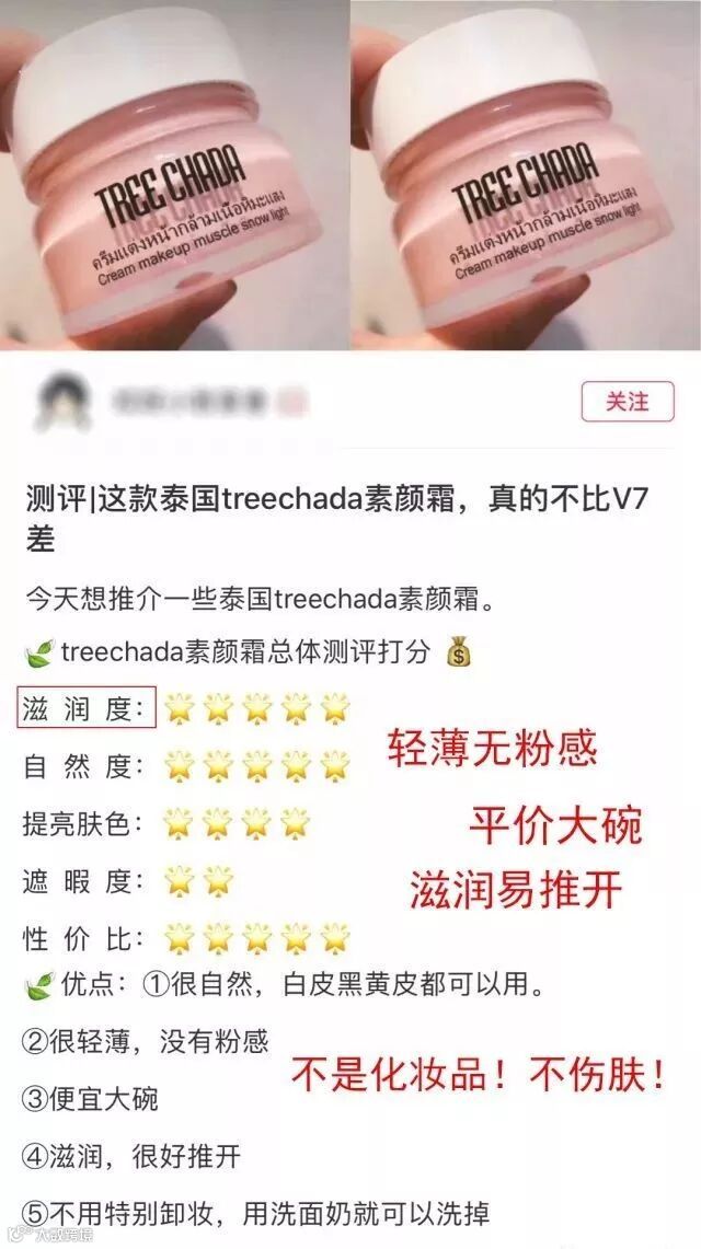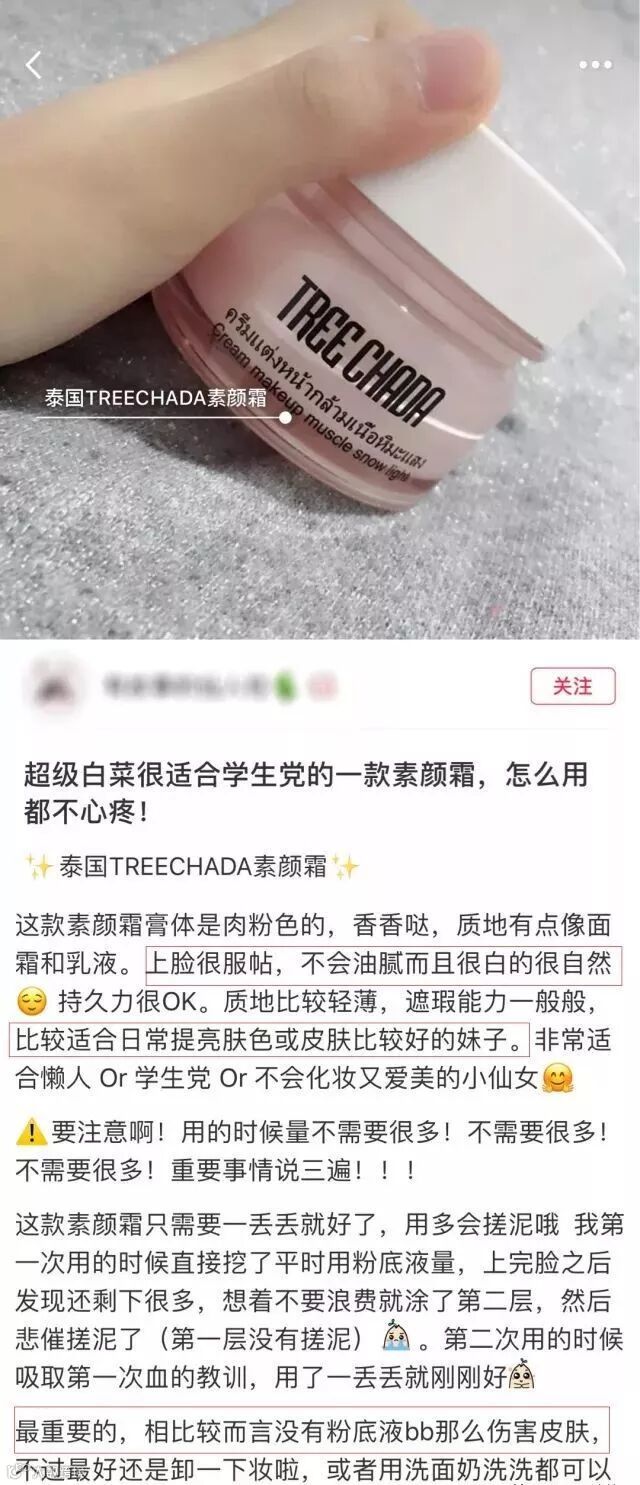 不假面、不油腻、滋润美白0妆感,超平价,小编推荐的这款素颜霜在ins、小红书可谓是爆炸款,为了安利ta妹纸们都在写长篇笔记分享感受——泰国Treechada素颜霜。