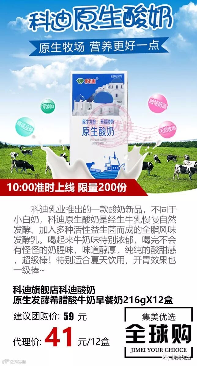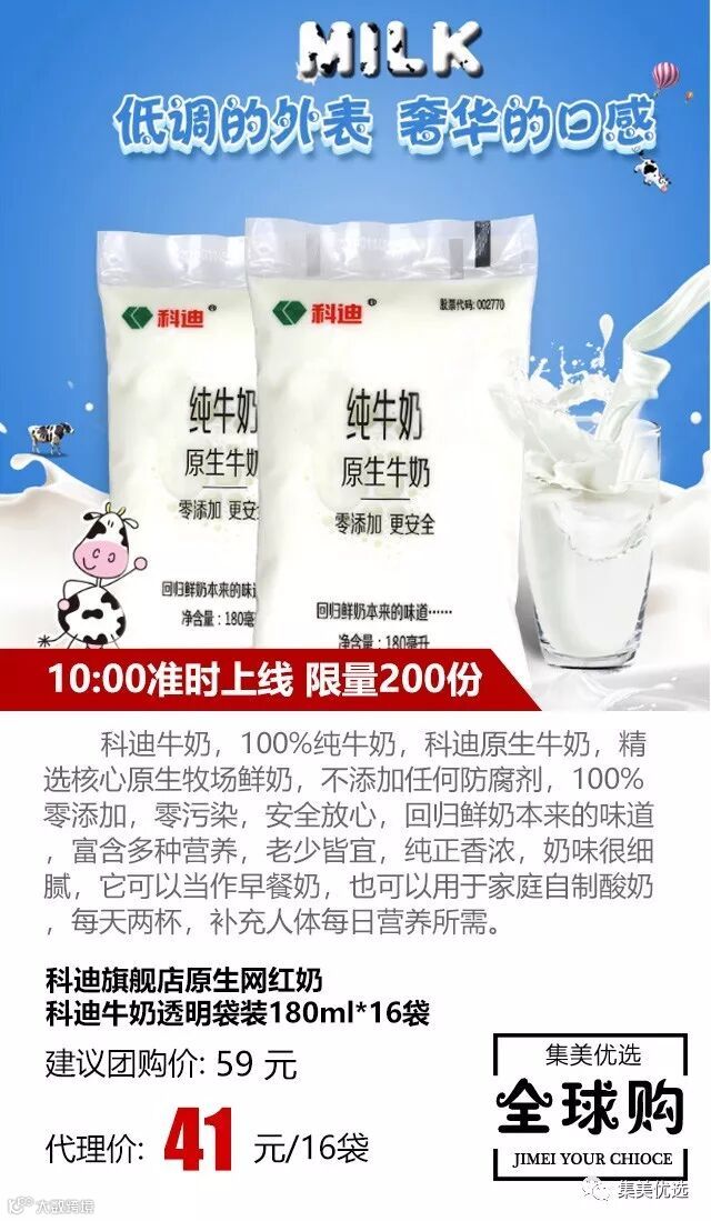 科迪牛奶,100%纯牛奶,科迪原生牛奶,精选核心原生牧场鲜奶,不添加任何防腐剂,100%零添加,零污染,安全放心,回归鲜奶本来的味道,富含多种营养,老少皆宜,纯正香浓,奶味很细腻,它可以当作早餐奶,也可以用于家庭自制酸奶,每天两杯,补充人体每日营养所需~