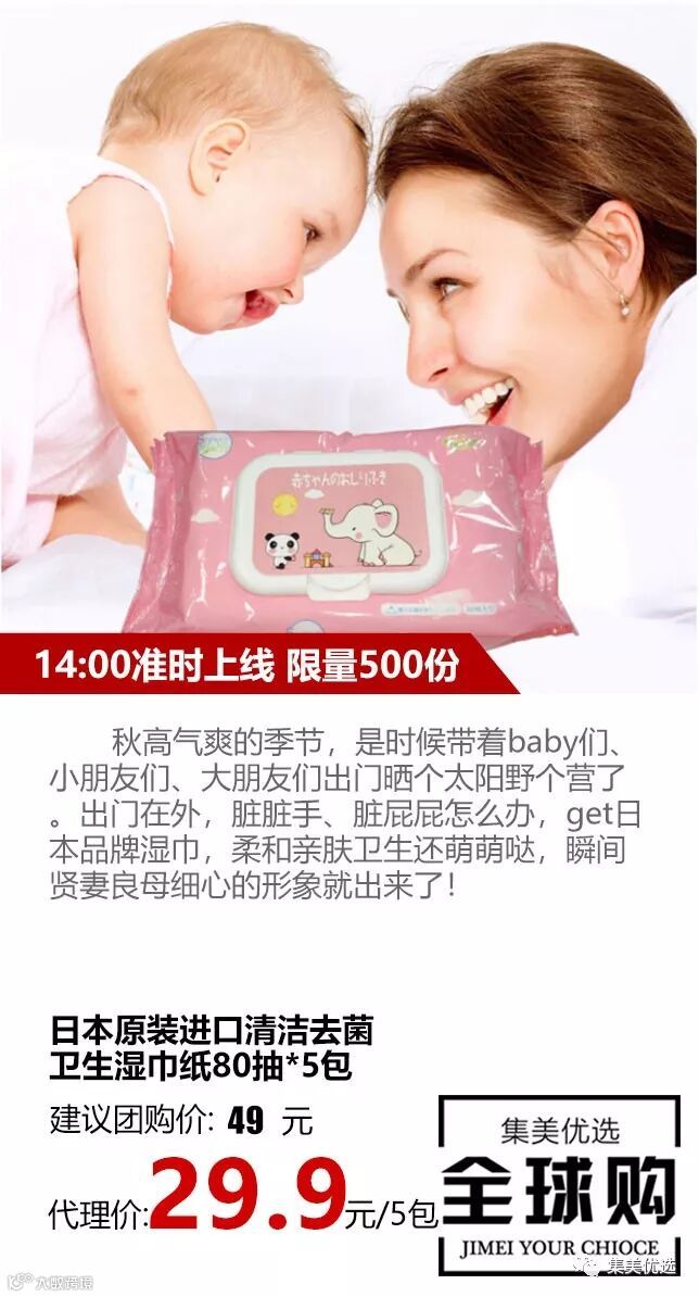 秋高气爽的季节,是时候带着baby们、小朋友们、大朋友们出门晒个太阳野个营了。出门在外,脏脏手、脏屁屁怎么办,get日本品牌湿巾,柔和亲肤卫生还萌萌哒,瞬间贤妻良母细心的形象就出来了!