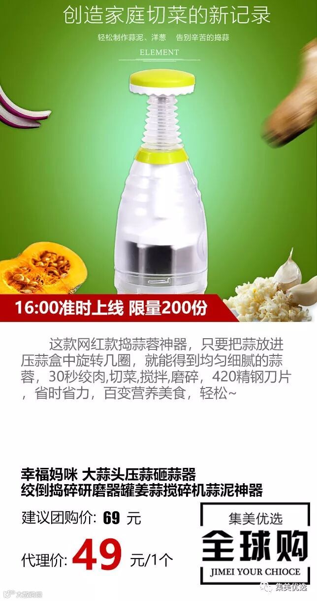 这款网红款捣蒜蓉神器,只要把蒜放进压蒜盒中旋转几圈,就能得到均匀细腻的蒜蓉,30秒绞肉,切菜,搅拌,磨碎,420精钢刀片,省时省力,百变营养美食,轻松~
