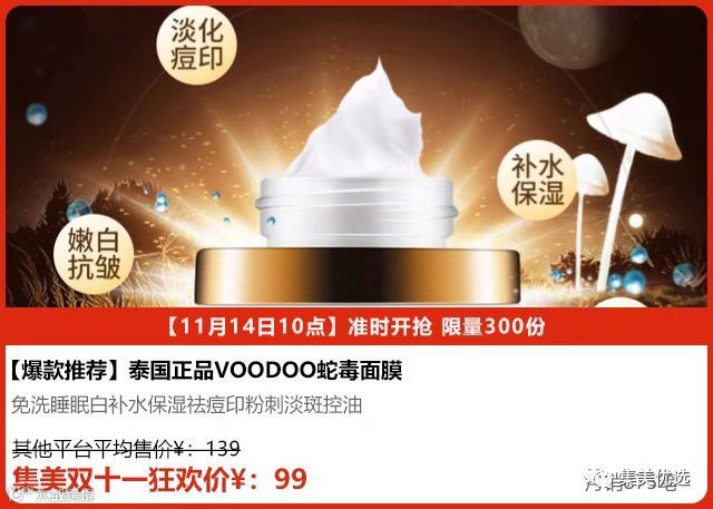 4.9高分美物 火遍亚洲的泰国Voodoo 白蛇毒面膜,美丽肌肤睡出来!白色膏体,质地粘稠细腻,特含蛇毒血清中含有的一种蛋白syn-ake成分,有效提亮肤色,抗衰老紧致,收缩毛孔,深层褪化皮肤层黑色素,祛暗黄,色斑,痘印。可以大胆的说使用的第一个晚上,第二天起床立即见效,你会感觉皮肤嫩滑了,富有弹性,各种色斑、暗黄淡化~