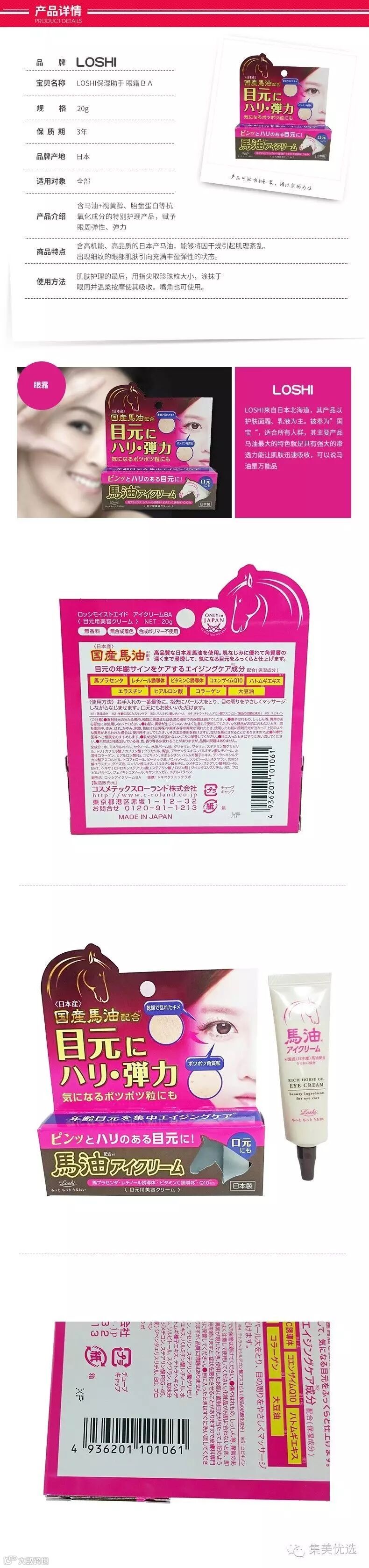 日本Loshi马油眼霜抗皱去角质20g/支 保湿抗皱眼部精华