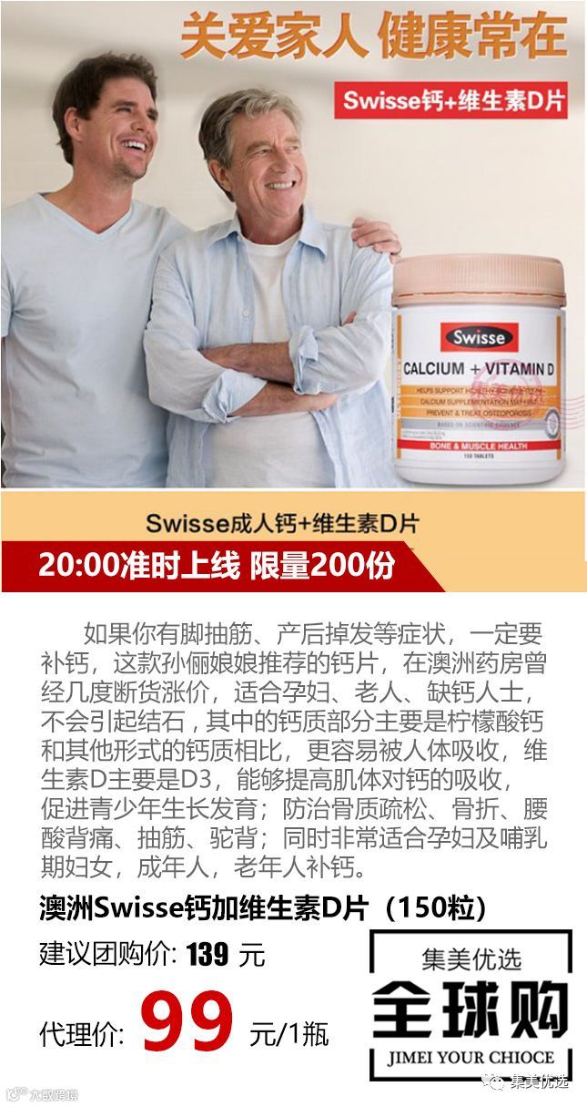 如果你有脚抽筋、产后掉发等症状,一定要补钙,这款孙俪娘娘推荐的钙片,在澳洲药房曾经几度断货涨价,适合孕妇、老人、缺钙人士,不会引起结石,其中的钙质部分主要是柠檬酸钙,和其他形式的钙质相比,更容易被人体吸收,维生素D主要是D3,能够提高肌体对钙的吸收,促进青少年生长发育;防治骨质疏松、骨折、腰酸背痛、抽筋、驼背;同时非常适合孕妇及哺乳期妇女,成年人,老年人补钙。