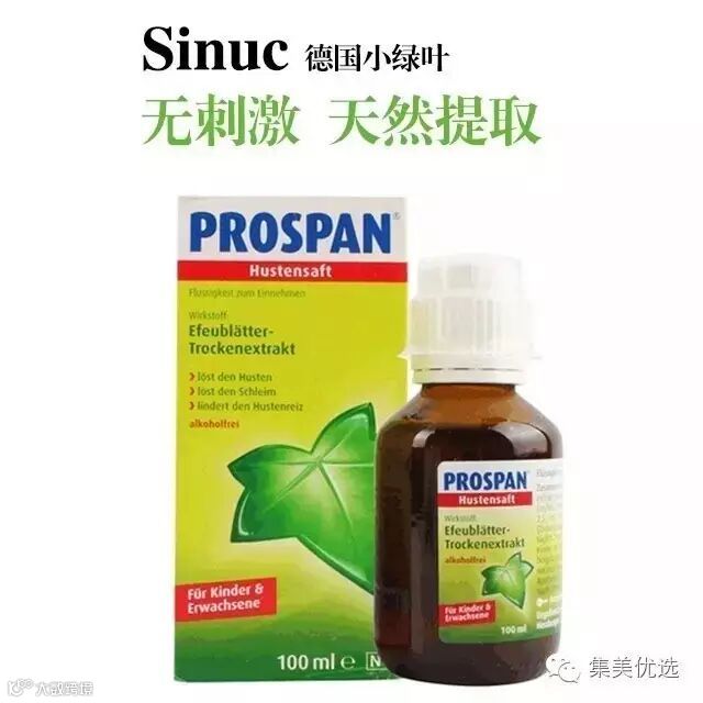 由Engelhard所发展含有特殊常春藤叶萃取物之药品Prospan,用于支气管炎与慢性呼吸道疾病之治疗,在本草疗法上替自己打出了名声。这款专门针对婴幼儿的止咳糖浆,纯天然植物精华提取,不含酒精,有效快速的缓解感冒等各种病因引起的咳嗽,舒缓咽喉肿胀,消除炎症,有效的抑制习惯性干咳,舒缓咳嗽引起的窒息,呼吸不畅等困难,有效对抗可能转化的严重的支气管炎症。对成人也很有效。包装内有带有刻度的量杯,可以方便准确的给药。这款糖浆不含任何激素,不上瘾,也不会产生药物依赖。