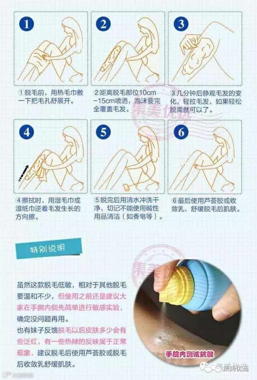 英 国<杜碧斯>喷雾脱毛摩丝有效清除人体五大部份之不雅体毛,无论是在上唇,腋下,手部,大腿内侧及小腿,均适合使用,<杜碧斯> 脱毛产品配方独特,带有清香成分,含丰富矿物油,在脱毛的同时滋润肌肤,保持幼嫩柔软,使用<杜碧斯>喷雾脱毛摩丝非常简便,脸上也可以安全使用:由于脸部皮肤软为敏感,请先涂少许脱毛膏试验,如无不适或过敏等反应,即可放心使用