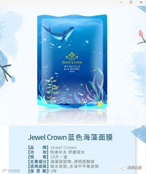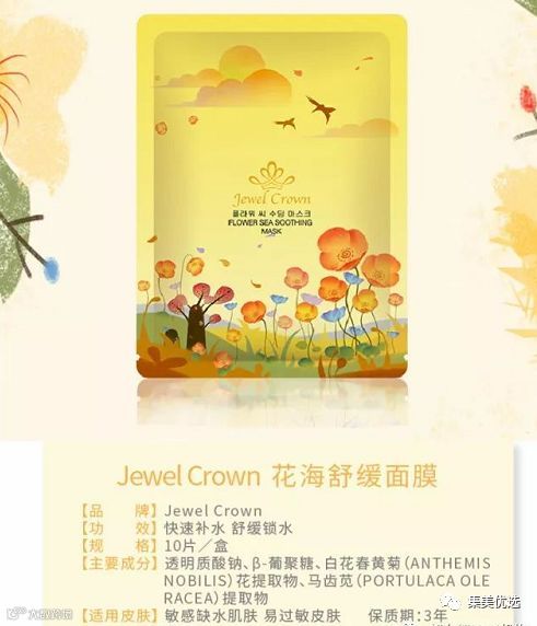 韩国JC面膜生产厂家为亚洲最大的化妆品生产厂家——韩国科玛。JC面膜总共有四款不同功效的包装。蓝色海藻面膜主打补水,黑色星空面膜主打清洁、收缩毛孔,璀璨美白面膜主打提亮肤色,花海舒缓面膜主打抗敏舒缓,调理肌肤。所以说,如果你也想到38岁的时候,也拥有二十岁的好皮肤,现在就给自己选一款合适的面膜吧,它会让你的皮肤延缓衰老,时刻水润光泽,让你经历岁月的洗礼、却依然有张不老的脸!