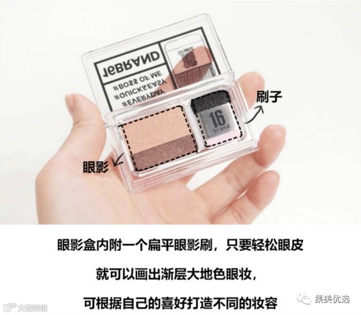 被林允 @林允Jelly 种草这款超ins配色超美的懒人眼影盘!相信很多博主也po过就是这款~韩国16 brand懒人双色双层渐变初学者眼影盘珠01#珊瑚色+可可棕色,上装效果非常好看~小刷子取粉后顺着眼皮轮廓就能轻松上眼影,适合新手和懒人~专为懒人而设,只要3秒就化好双色渐变眼影,眼影盒内附有一个扁平眼影扫,只要轻扫眼皮就可画出渐层美丽的眼妆,也可以依照自己的喜好,用扫子集中在深或浅的位置而做出不同的妆感,而效果也非常自然。💋💋